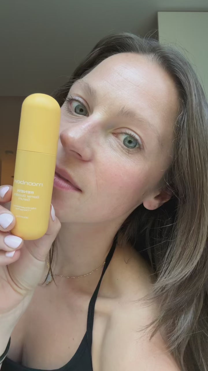 The Renew Barrier Boosting Serum is the second step in your Moonbow routine for a supercharged boost of moisture, calm and glow. Formulated with calming wild chrysanthemum and orange peel full of Vitamin C, our serum nourishes the skin barrier, provides protection against skin dryness, and leaves skin fresh and radiant.