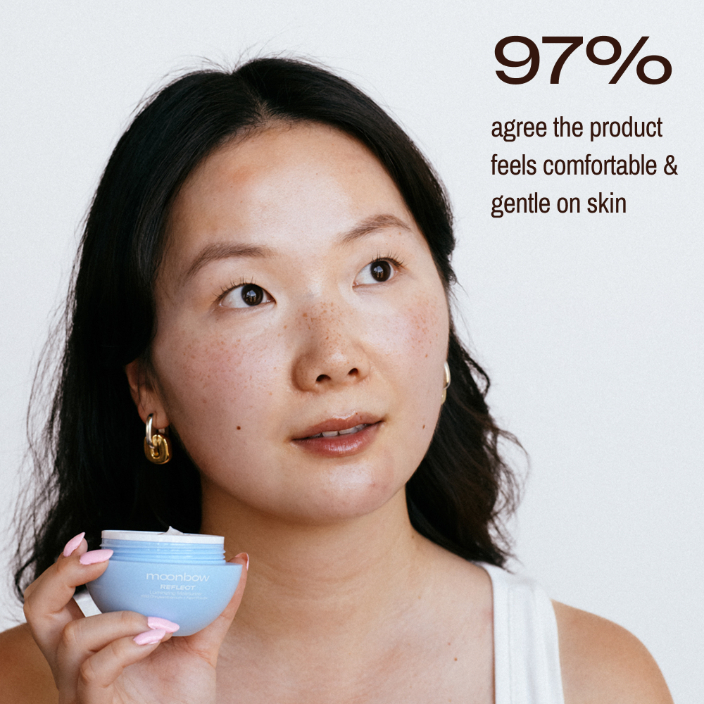 Finish on glowing terms with Reflect Luminizing Moisturizer. Massage a quarter-sized amount into skin & revel in your dewy glow.